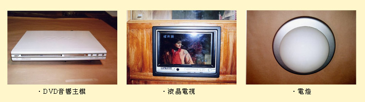 - 特 點4: 內部設備含DVD音響,液晶電視。