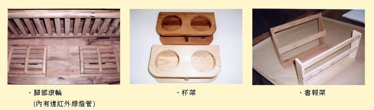 - 特 點2: 2.內部遠紅外線採埋入式設計,並平均分佈,照射全身。 (後背3支,椅下2支,前面二側各1支,滾輪內2支共計9支)