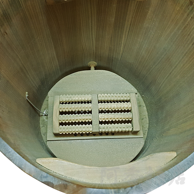在您要用時,先將足蒸桶倒立,用榔頭(鐵鎚)將鐵線栓緊,